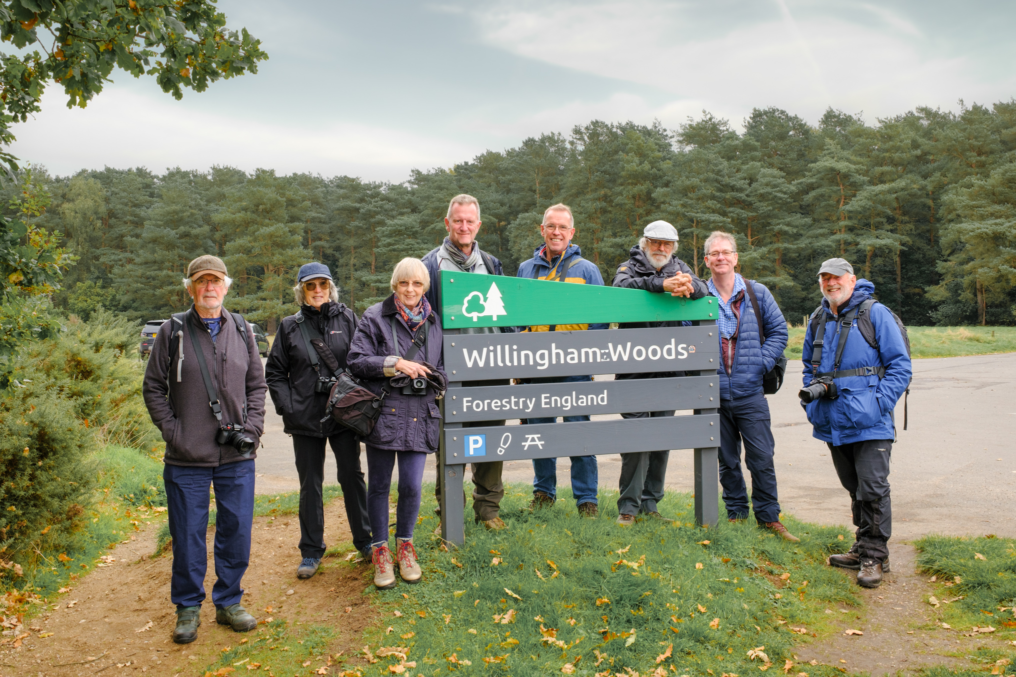 As a group, we met at 10 AM by the kiosk cafe, where I snapped a quick photo of the group standing proudly by the Willingham Woods sign. Left to Right we have Howard and Jackie Fisher, Diane Seddon, Rob Hill, Graeme Reynolds, Peter Roworth, Richard Hall, and John Rutherford.